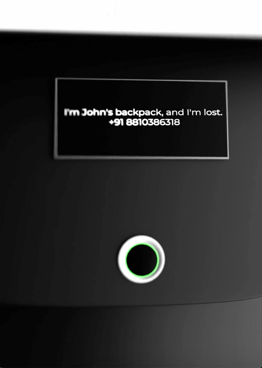 Your bag still has your back. Even when power runs out, your identity stays visible. Our Smart Display protects what matters — showing your contact info for up to 10 years, no charge needed.